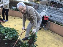土の中からお芋が顔を出すたびに歓声が上がり、笑顔のご利用者様。