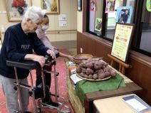 1キログラムのサツマイモを展示し、この重さを基準に予想していただきました。