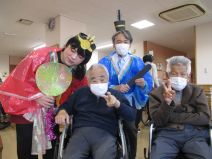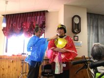 職員がお内裏様とおひな様に仮装して登場すると、