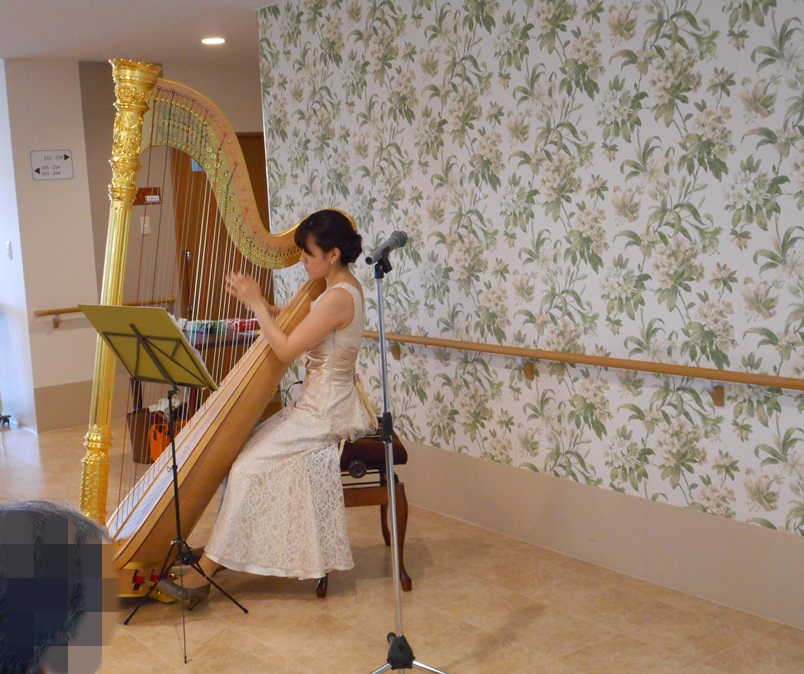 11日にハープの演奏会を開催しました。ご入居者様のお孫さんがプロのハープ奏者で、素晴らしい演奏を聞かせていただきました。